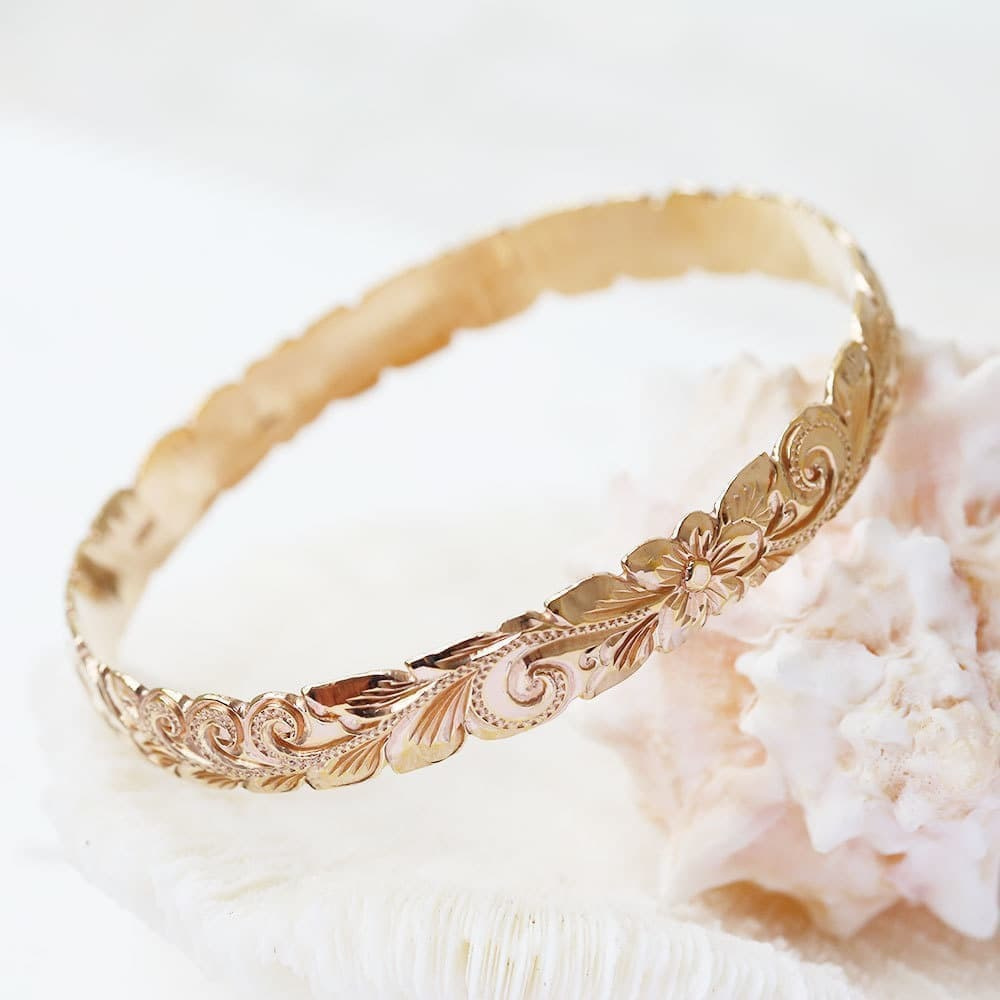 人気のハワイアンジュエリー バングル。ハワイアンジュエリー伝統の作り方で鍛造の地金から職人が1つ1つ手作りするプアアリのハワイアンバングル。フルオーダーですので、3000通り以上の組み合わせから、世界にたった一つのあなただけの1点物のバングルをご希望に合わせてお作りします。